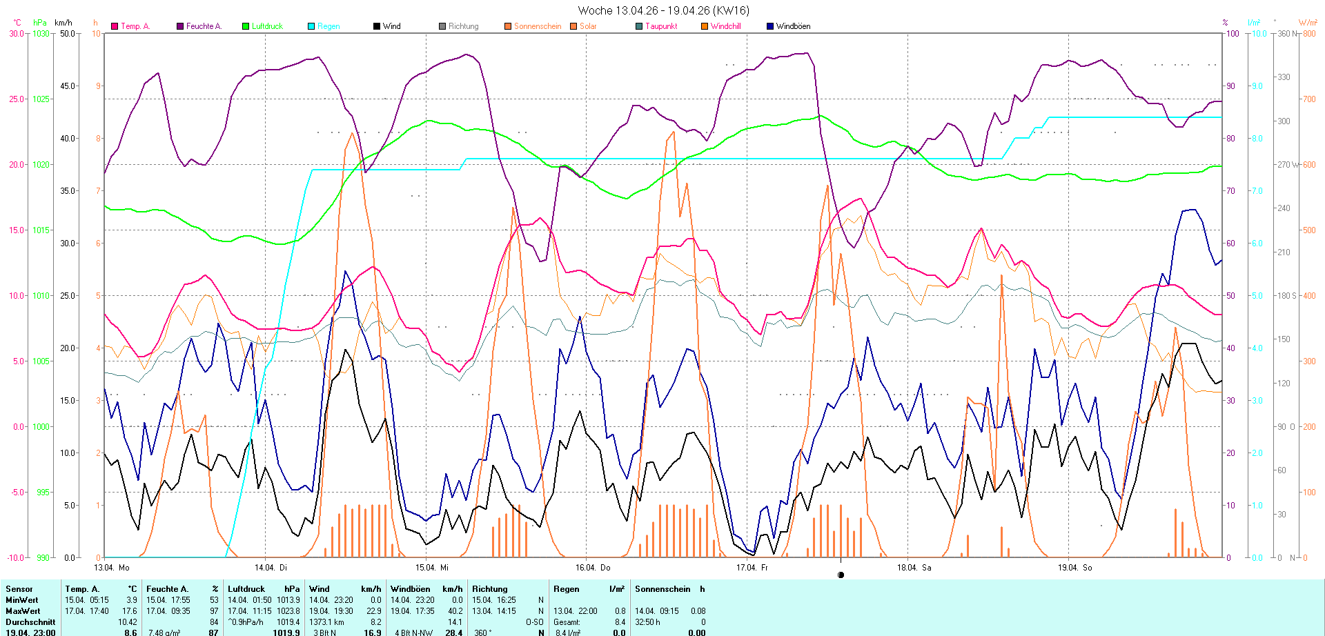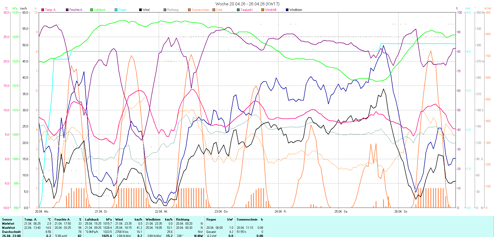 Mit unserer Wetterstation erfassen wir kontinuierlich die gängigen Wetterdaten